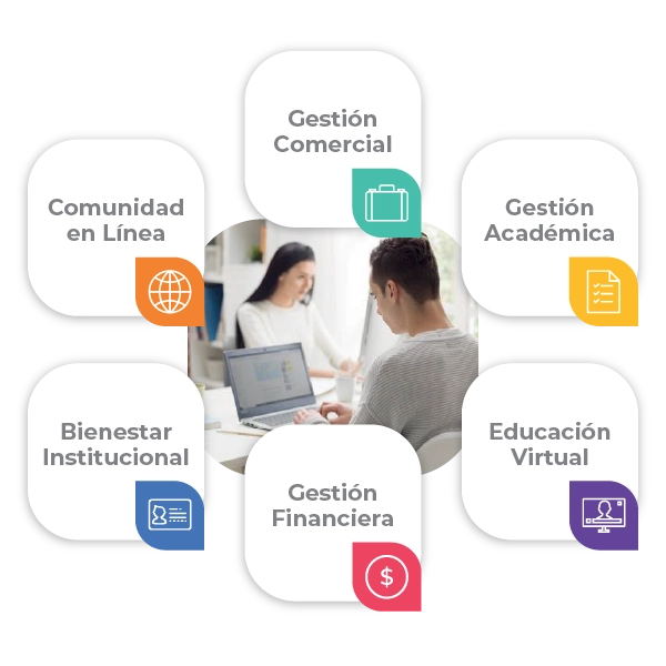 Administra la información académica de tus estudiantes de principio a fin para mejorar procesos como: matrículas, programación de horarios, registro de notas y evaluación docente.